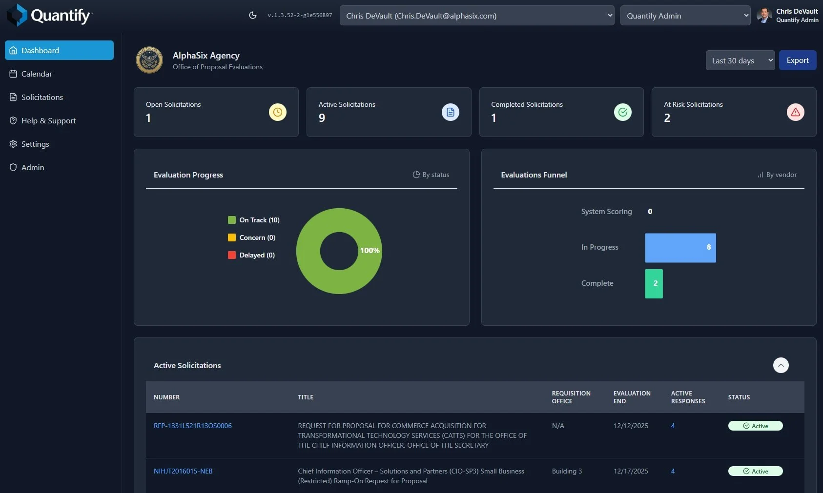 Quantify’s security model is built not only to protect sensitive acquisition data—but to ensure the integrity, fairness, defensibility, and repeatability of the government evaluation process itself.